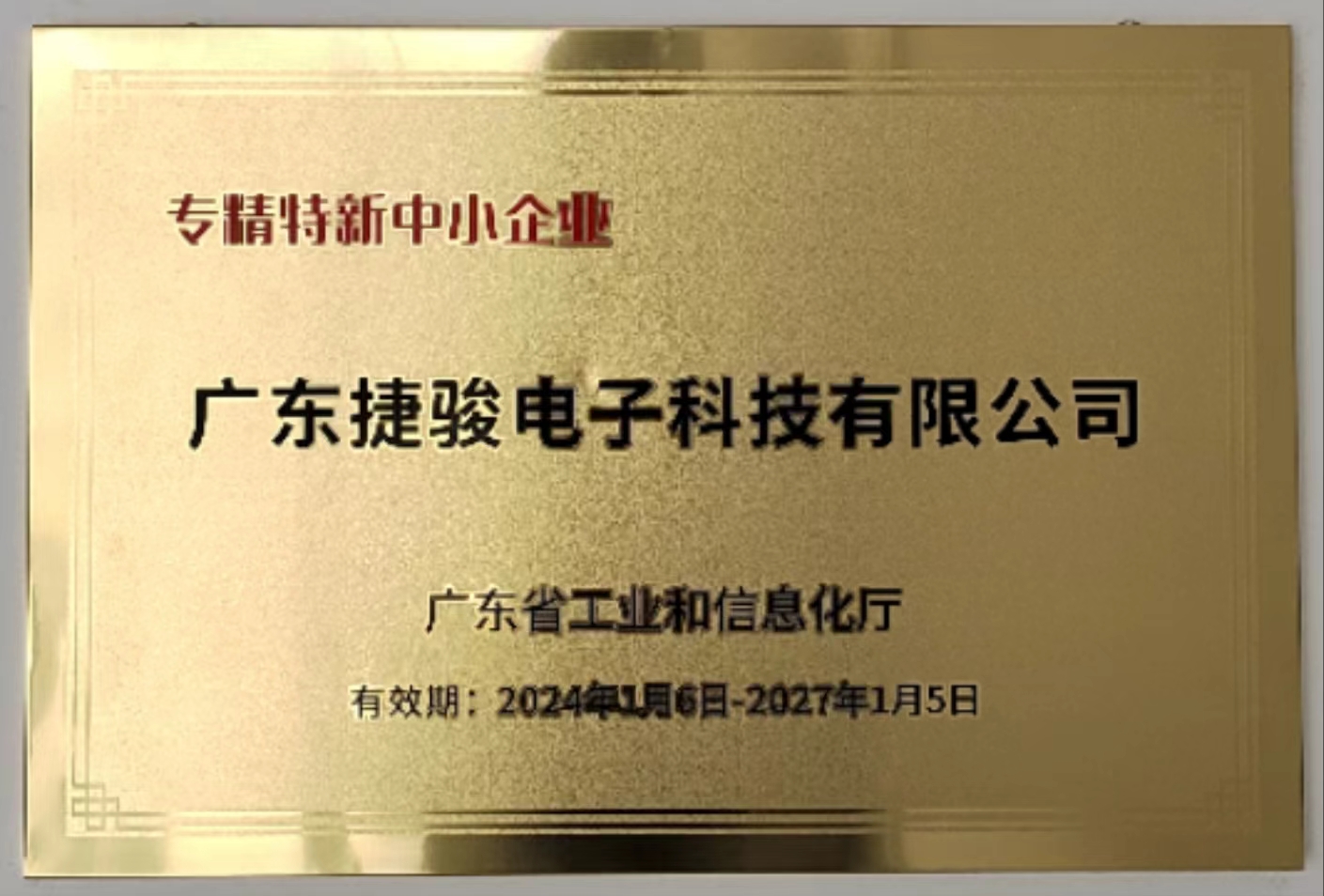 廣東捷駿電子科技有限公司榮獲“專精特新”中小企業(yè)稱號(hào),標(biāo)志著該企業(yè)在科技創(chuàng)新、專業(yè)化經(jīng)營(yíng)以及精細(xì)化管理等方面取得了顯著成就,展現(xiàn)出強(qiáng)大的市場(chǎng)競(jìng)爭(zhēng)力和行業(yè)影響力。
