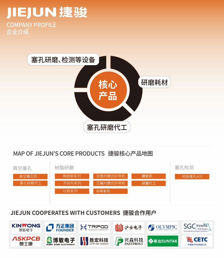 廣東捷駿電子科技有限公司,在廣州捷駿的基礎(chǔ)上成立于2018年。經(jīng)過(guò)多年的不懈努力,逐步成長(zhǎng)為以真空塞孔研磨檢測(cè)設(shè)備、研磨耗材、真空塞孔代工為支柱的綜合型公司。公司集專(zhuān)業(yè)制造、自主研發(fā)、銷(xiāo)售為一體,取得多項(xiàng)SGS管理體系認(rèn)證,獲得廣東省高新技術(shù)企業(yè)和專(zhuān)精特新中小企業(yè)證書(shū)。